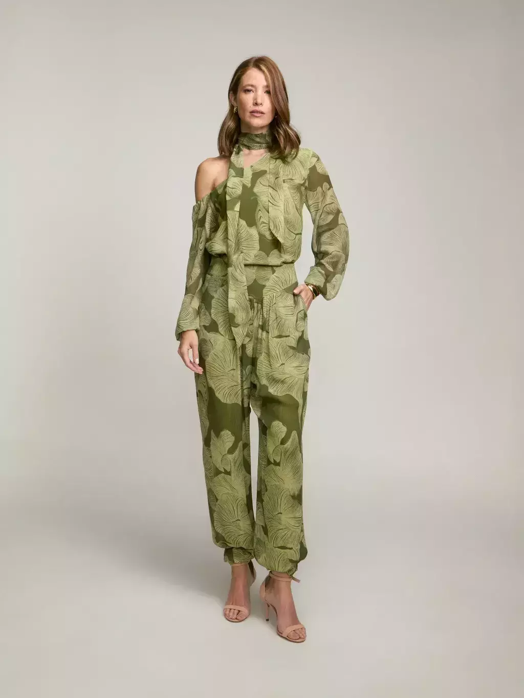 Calça confeccionada em georgette com estampa Mushroom Organic. Modelagem reta, inteira forrada e detalhe de elástico nas costas. Possui bolsos fontais e lapelas nas costas. Fechamento lateral por zíper.