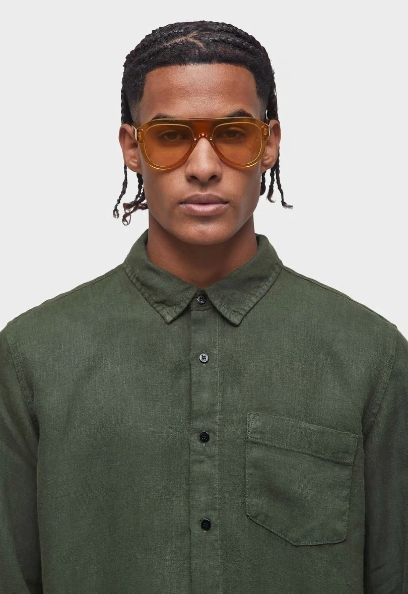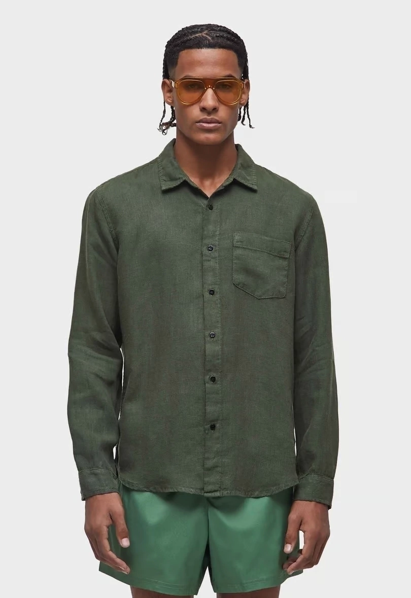 Camisa manga longa masculina. modelagem casual. peça tinturada e amaciada. tecido 100% linho.