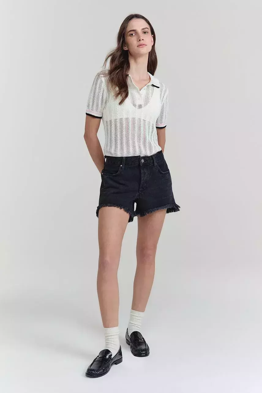Short confeccionado em jeans com modelagem reta e comprimento curto. A peça possui cintura média, lavagem suave e acabamento em barra à fio, trazendo um toque despojado. Conta com bolsos frontais e traseiros, cós reto e fechamento frontal com botão de metal.